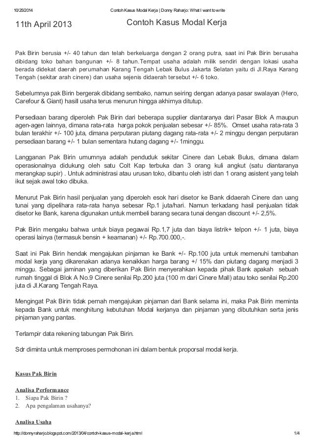 Contoh Kasus Modal Kerja Donny Raharjo What I Want To Write